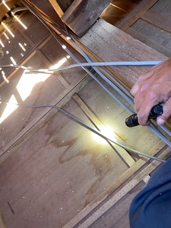 屋根裏に雨漏りヵ所があり、谷回りからあまもりがひろがっていました。