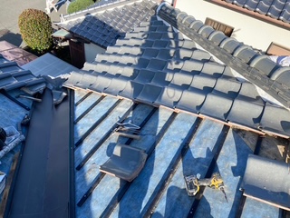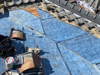 板金新設工事 瓦葺きの工事は今回桟木工法で葺いていきます。